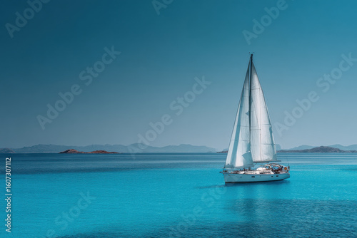 Obraz premium elegant yacht glides effortlessly across crystalclear waters under brilliant azure sky