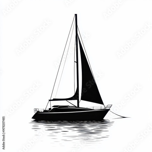 © Ivan, Fototapeta premium Elegant Yacht Outline: Minimalist Silhouette Representing Sailing Adventure on the Open Sea
