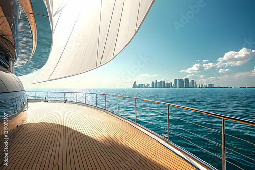 Naklejka premium Elegant Yacht Overlooking Calm Ocean Waters