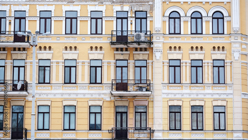 © aviavlad, Fototapeta premium Elegant yellow building with detailed architecture in city setting