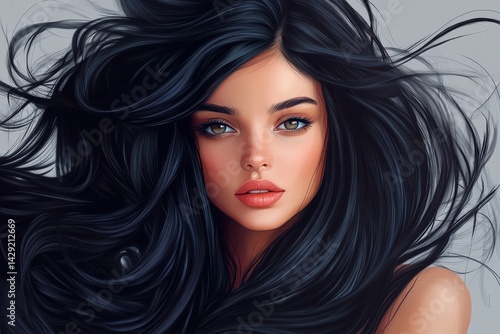 © Amena, Obraz premium Elegant young model with black dyed hair captured in stunning generative AI fashion-inspired illustration