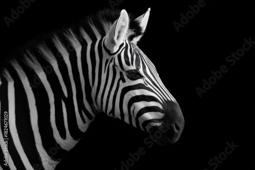 Naklejka premium Elegant zebra profile against black background highlighting stripes