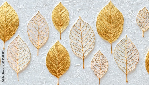 © ZayMO, Obraz premium Elegante motivo a foglie in rilievo con finitura oro metallizzato