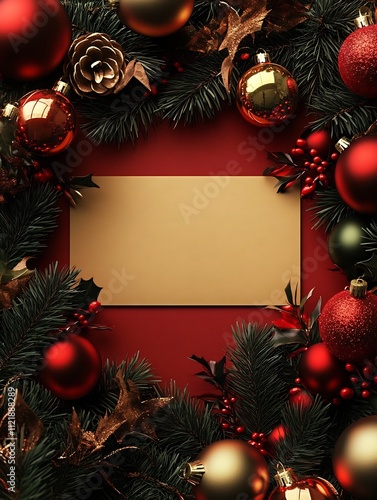 © LookChin AI, Fototapeta premium Elegantly Decorated Christmas Banner with Clear Center for Big Text
