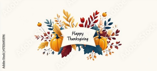 © Georgii, Obraz premium Elegantly designed Happy Thanksgiving text with autumn leaves
