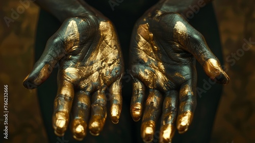 © vectorizer88, Fototapeta premium Elegantly posed hands painted in black with gold fingertips