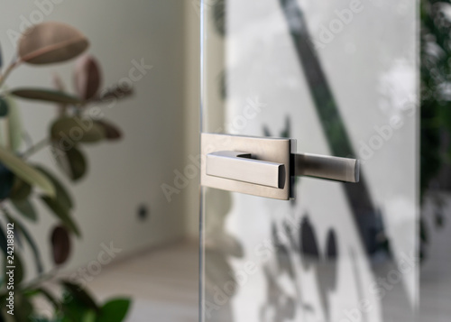 © brizmaker, Fototapeta premium Element of transparent glass door in the room