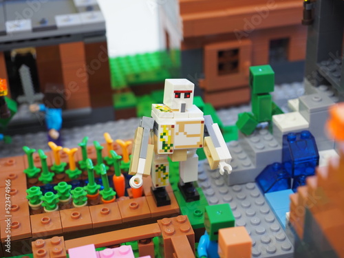 © Elroi, Naklejka premium Elements and fragments of Lego village world set. Characters of electronic game Minecraft. Children's designer with small details, developing motor skills and imagination.
