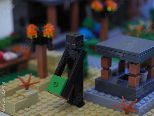 © Elroi, Naklejka premium Elements and fragments of Lego village world set. Characters of electronic game Minecraft. Children's designer with small details, developing motor skills and imagination.