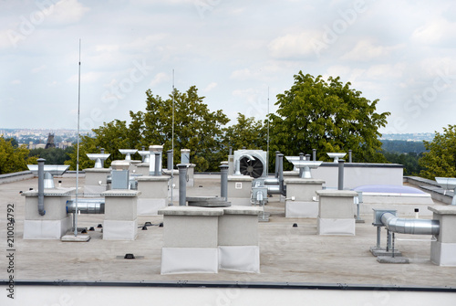© JDziedzic, Fototapeta premium Elementy klimatyzacji i wentylacji umieszczone na dachu budynku