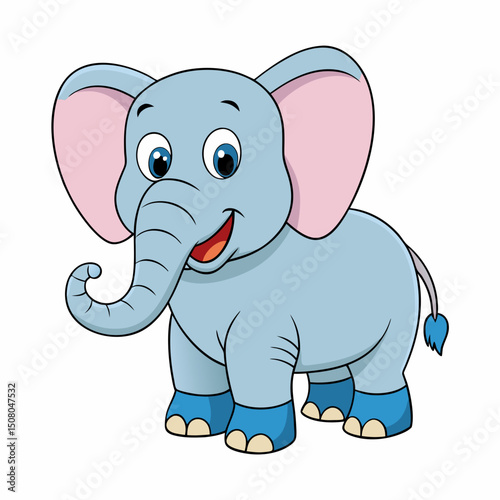 Naklejka premium elephant, animal, cartoon, vector, mammal, baby, illustration, fun, safari, cute, character, wildlife, wild, funny, art, nature, drawing, pink, zoo, jungle, gray, animals, comic, happy, smiling