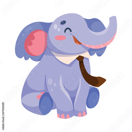 Obraz premium Elephant at School Sit in Tie and Smile Have Lesson and Education Vector Illustration