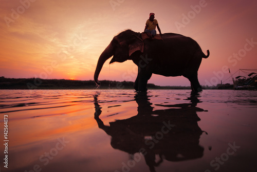 © yurybirukov, Naklejka premium Elephant at watering, Chitwan National Park