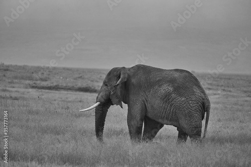 © rocchas75, Fototapeta premium Elephant Big Huge Tusker Amboseli - Big Five Safari -Baby African bush elephant Loxodonta africana Black and white