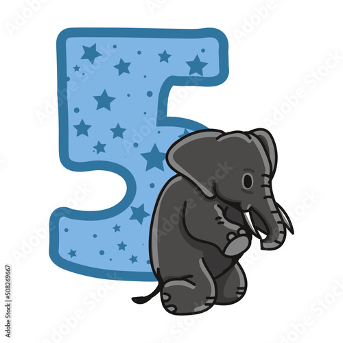 Obraz premium elephant Birthday Number 5 Monogram design elephant Five