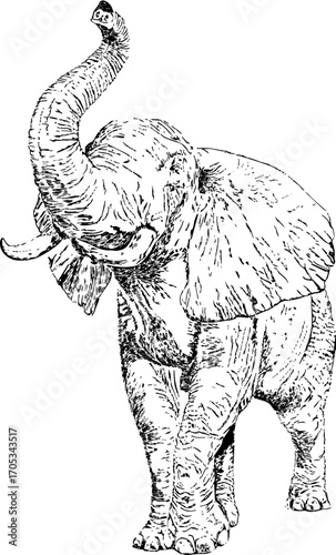 © Julia, Fototapeta premium Elephant. Black and white illustration. Vector illustration.