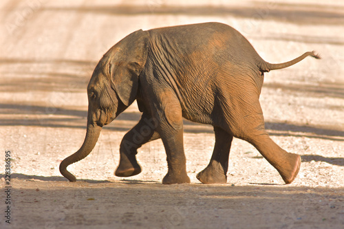 © Christophe, Obraz premium Elephant calf running for Mum.