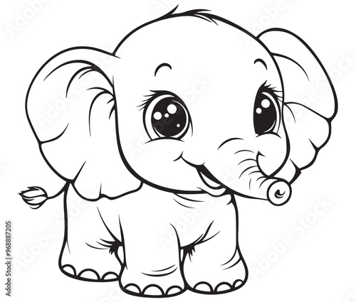 © Md.Riaz, Obraz premium Elephant cartoon page cute animals vector illustration