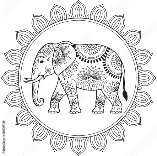 Fototapeta premium Elephant Coloring Page | Mandala Style Vector Art