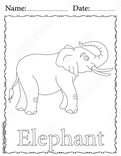 © AhmedSherif, Naklejka premium Elephant Coloring Page. Printable Coloring Worksheet for Kids. Educational Resources for School and Preschool.