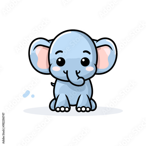© B-design, Naklejka premium Elephant hand-drawn kids comic illustration. Cute vector doodle style cartoon illustration