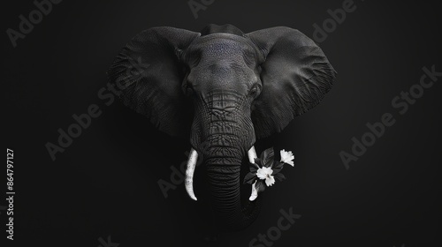 © Alpha, Fototapeta premium Elephant head in black and white, exquisite detail, black background, stark and captivating contrast