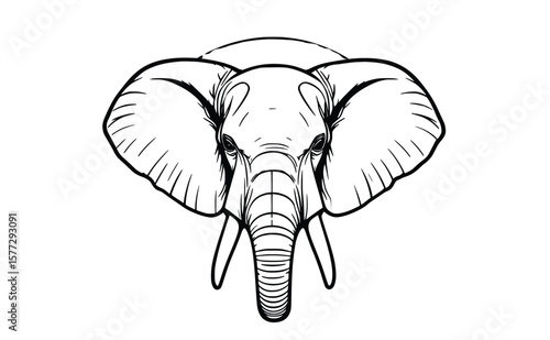 © GHULAM Abbbas, Fototapeta premium Elephant Head Line Art Illustration – Wildlife Sketch Style Animal Drawing