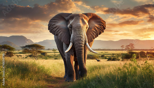 © SEIJI211, Obraz premium elephant in the sunset