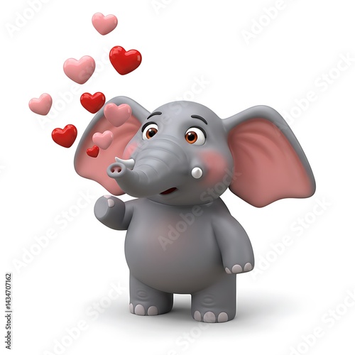 Naklejka premium Elephant kissing hearts into the air