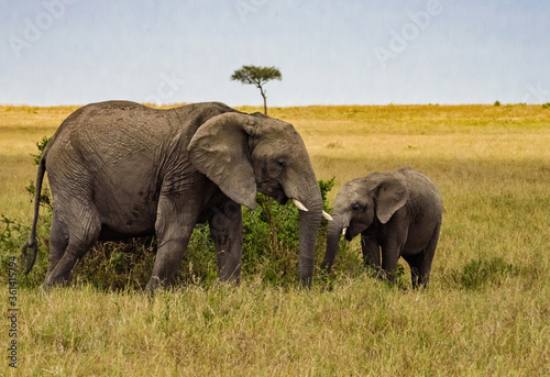 © Betty Rong, Obraz premium Elephant Mother and Baby in Masai Mara, Kenya