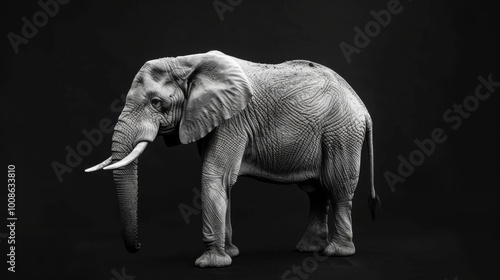 Fototapeta premium Elephant on black, fine art B&W isolated on white background, studio...