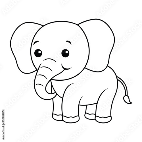 Fototapeta premium Elephant Outline Design, Elephant Clipart, Cute Baby Elephant illustration in black and white