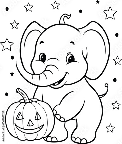 © vectorart092, Obraz premium elephant-playfully Spooky pumpkin line art coloring page, kids coloring book. Generative Ai