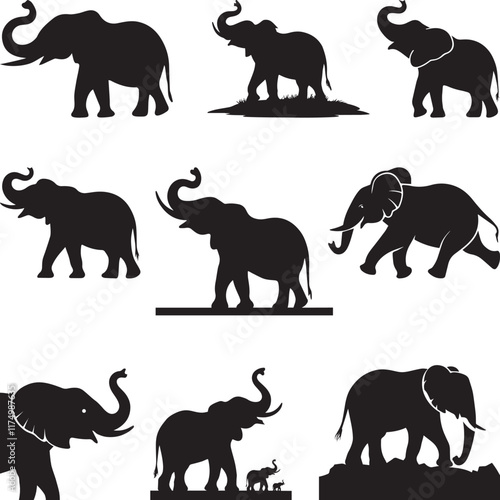 © Bashar, Fototapeta premium Elephant Printable Vector Design, Elephant kids Hand drawn elephant outline illustration, Set of elephant character silhouettes,