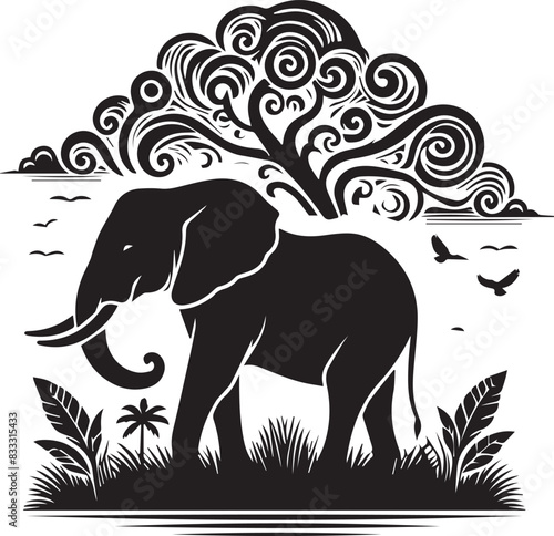 Obraz premium Elephant silhouette vector art white background