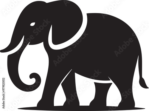 © Masud, Obraz premium Elephant silhouette vector black color silhouette solid white background.