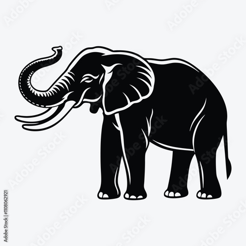 © lokshmon, Fototapeta premium Elephant Silhouette White background illustration Generative Ai