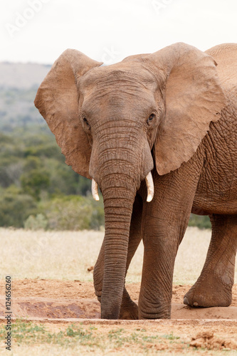 © charissalotter, Obraz premium Elephant Standing and Posing while drinking water