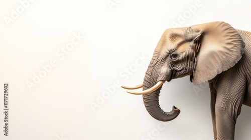 © Pavel Kachanau, Obraz premium Elephant standing isolated against a white background showcasing its majestic features and details