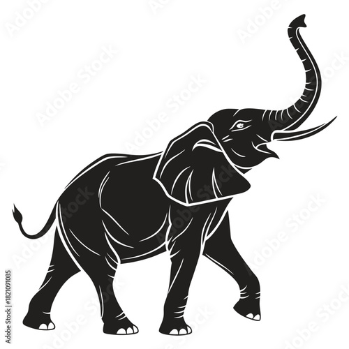 Obraz premium Elephant Stencil Silhouette Vector with Raised Trunk - Bold Black Cut-Out...