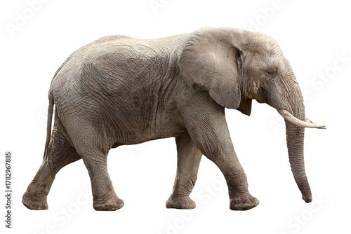 © bobby, Fototapeta premium elephant strides forward, showcasing its textured skin on transparent background