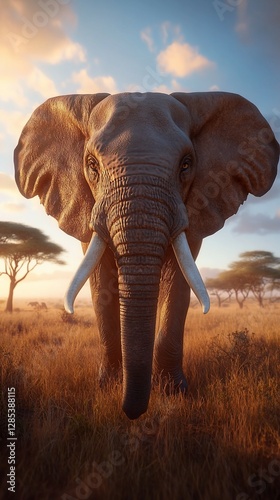 Obraz premium Elephant sunrise savanna portrait wildlife