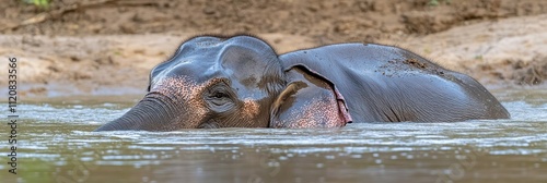 © BerkahStock, Fototapeta premium Elephant swimming in a river.