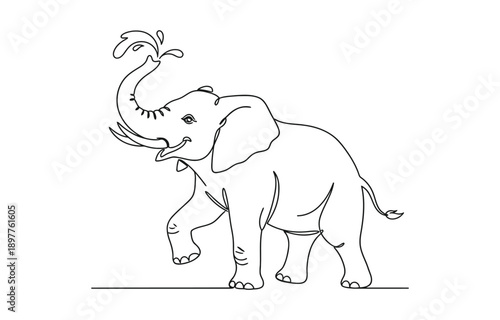 © shrabon2005, Obraz premium Elephant walking and playing, one line vector.
