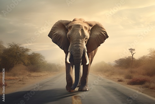 Obraz premium Elephant walking down the road