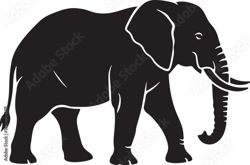 Fototapeta premium Elephant walking silhouette, strong shape, clean outline