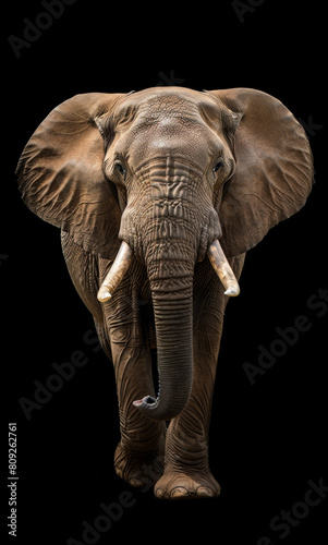 © Анна Терелюк, Fototapeta premium Elephant walking towards the camera isolated on black