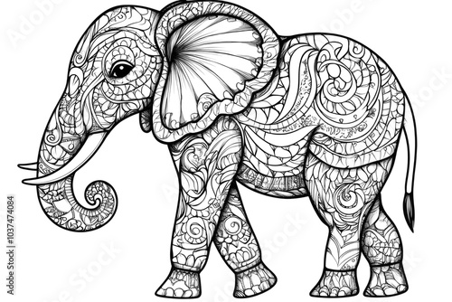 Obraz premium Elephant walking with trunk raised and floral pattern design children's coloring sheet