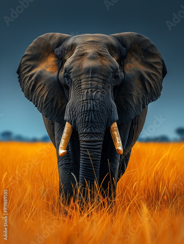 © YOAQ, Naklejka premium elephant with tusks, big animal in nature, wildlife pattern. Design for Wall Art, Poster Print, Wallpaper & Background