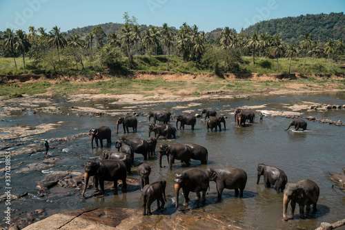© Zach, Obraz premium Elephants bathing in tropical river in Sri Lanka